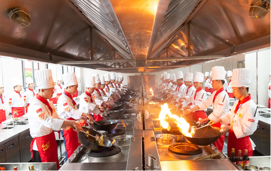 学校投入巨资打造现代化教学环境,打造1比1企业级后厨实训教室、配备万用蒸烤箱、低温慢煮机等高端设备,建有模拟餐厅、互动式宴席大厅等实训场地。实行“半军事化+人文化”管理模式,24小时安保与三教三训体系为学生提供安全、有序的学习环境。